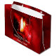 La llama reflejada de una única vela roja brilla con fuerza en la parte delantera de este diseño, cubierta con una apariencia de Relieve metalizado texturado en un rojo profundo. "Te deseo una bendita temporada navideña" está en una letra de escritura dorada pálida en la imagen, delante y atrás. La vela roja, la llama y la llama reflejada y el fondo muzzy negro y rojo llenado de estrellas se mezclan en un fondo de Relieve metalizado rojo profundo. La inscripción, "Te deseo una temporada de feriado bendita" puede ser fácilmente editada a cualquier cosa que quieras. Solo pulsa "Personalizar" y empieza. O eliminarlo por completo, si lo prefiere. #ChristmasGifting (Bolsas de Regalos de Navidad) #ChristmasBagDesign #HolidayPackaging #ChristmasGiftWrap #ChristmasSurprise Encajamiento de regalo de Navidad. Ideas de regalo de Navidad. Inspiración de regalo de Navidad. Las ideas de los regalos bajo el árbol.