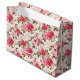 Esta bolsa de regalo de ocasión se muestra en una hermosa impresión rosa. Se muestra el tamaño grande