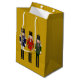 Trio de los Nutcracker de los navidades: Tres Nutcrackers apoyándose uno al lado del otro sobre un fondo de oro sólido. El primer petardo está vestido de azul y blanco con adornos dorados. El petardo central está vestido de rojo y oro con adornos dorados. El tercer petardo está vestido de verde y blanco con adornos plateados. Cada una de estas galletas nudistas está disponible por separado en diversos regalos y productos de Zazzle. Elija cualquier bolso de regalo de tamaño disponible. Hay dos áreas de texto para que puedas personalizar. Edita el texto para decir lo que quieras. Borra o borra las áreas de texto que no desee.
