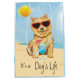 ¡Es la vida de un perro! Estar fresco y celebrar los días de verano del perro con este lindo Norwich Terrier usando gafas de sol y relajándose con una bebida.