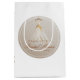 Envuelva los regalos de la despedida de soltera con elegancia atemporal con esta bolsa de regalo personalizada que presenta un vestido de novia de acuarela y flores rústicas suaves en rosa polvoriento, taupe y marfil. El nombre de la novia y la fecha del evento se muestran al frente y al centro para un toque personalizado que se integra perfectamente en su celebración de otoño o con tema de jardín. Una forma hermosa y práctica de presentar favores, premios o regalos para la futura novia.