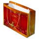 Gran nudo tradicional chino en una decoración roja con papel dorado cortado de rata. Diseño en una gran bolsa de regalo. Tarjeta de saludo, postal, invitaciones, productos artesanales y más... Perfecto para el Año Nuevo Chino de la Rata 2020 o cumpleaños (personas nacidas en Año Rat).