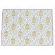 Huevos de Pascua pintados de verde pastel, amarillo y lavanda en un elegante patrón de baldosas damasquinadas.