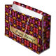 Este colorido adorno de cristal es ideal para las vacaciones. Estos adornos brillantes están en tonos rojos, rosas y dorados. En la parte delantera y trasera de la bolsa hay una banda de color dorado con un área para el texto. Aquí se muestra el texto que dice, "¡Felices Fiestas!", que puedes personalizar.con tu propio texto.