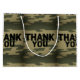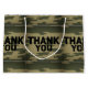 Muestra tu aprecio con estilo audaz usando esta bolsa de regalo "Gracias" de Camouflage. Diseñado con un áspero patrón de camuflaje y una tipografía fuerte y limpia, es perfecto para honrar a los miembros del servicio, celebrar el trabajo en equipo o dar las gracias con una ventaja. Duradero, llamativo y versátil, esta bolsa le aporta un toque de fuerza a su gesto de gratitud.