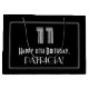 Este diseño de bolsa de regalo de cumpleaños con aspecto vintage de los años 20-30 presenta un gran número "11" inspirado en el estilo art déco, el mensaje "Feliz cumpleaños 11", un nombre personalizado y un patrón de borde que consiste en líneas delgadas. El fondo es de color negro. Una bolsa de regalo como esta podría ser utilizada al envolver regalos que se dan a alguien en celebración de su cumpleaños número 11.