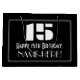 El diseño de esta bolsa de regalo inspirada en el estilo de los años 20-30 presenta un gran estilo Art Déco inspirado en el número "15", el mensaje "Feliz 15 cumpleaños", un nombre editable, y un patrón de frontera que consiste en líneas delgadas. El fondo es negro de color. Una bolsa de regalo como esta puede ser usada cuando se da un regalo o regalo en honor al cumpleaños 15 de alguien. [~Z0000495]