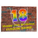 Este colorido y divertido diseño de bolsos de regalo con temática de cumpleaños, inspirado en el arte callejero, presenta un gran número "18" con un patrón inspirado en el gradiente del espectro arcoiris. También incluye el mensaje "Feliz cumpleaños número 18", y un nombre personalizado. También tiene un fondo de pared de ladrillo. Una bolsa de regalo como esta podría ser usada para envolver regalos que se le dan a alguien en celebración de su 18º cumpleaños. [~Z0000522]
