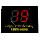 Este tonto y geek diseño de bolsos de regalo de cumpleaños presenta un gran número de "19" con un aspecto inspirado en la pantalla digital de siete segmentos de color rojo, junto con el mensaje "Feliz cumpleaños 19", y un nombre editable en texto amarillo geky, en un fondo de color negro. Bolsas de regalo editables como esta pueden ser usadas cuando se envuelven regalos o regalos para celebrar el decimonoveno cumpleaños de alguien. [~Z0000389]