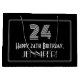 El diseño de esta bolsa de regalo inspirada en el estilo de los años 2000 tiene un gran estilo Art Déco inspirado en el número "24", el mensaje "Feliz cumpleaños 24", un nombre personalizado, y un patrón de frontera consistente en líneas delgadas. El fondo es negro de color. Una bolsa de regalo con tema de cumpleaños como esta puede ser usada para envolver un regalo o regalo que se le da a alguien que está celebrando su cumpleaños 24. [~Z0000497]