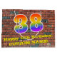 Este divertido y colorido diseño de bolsos de regalo con motivo del cumpleaños, inspirado en el arte callejero y el graffiti, cuenta con un gran número "38" con un diseño inspirado en el gradiente del espectro del arcoiris, junto con el mensaje "Feliz cumpleaños número 38", y un nombre personalizado. El fondo está decorado con un estilo de pared de ladrillo. Una bolsa de regalo como esta podría ser una manera divertida de envolver un regalo de cumpleaños o un regalo para alguien que esté celebrando su cumpleaños treinta y ocho. [~Z0000522]