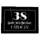 El diseño de esta bolsa de regalo inspirada en el estilo de los años 2000 presenta un gran estilo Art Déco inspirado en el número "38", el mensaje "Happy 38th Birthday", un nombre editable, y un patrón de borde compuesto de líneas delgadas. El fondo es negro de color. Una bolsa de regalo con temas de cumpleaños como esta puede ser usada cuando se da un regalo o regalo para la celebración de los 38 años de alguien. [~Z0000496]