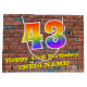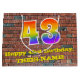 Este colorido y divertido diseño de bolsos de regalo de cumpleaños, inspirado en el graffiti y el arte callejero, presenta un gran número "43" con un patrón inspirado en el gradiente del espectro arcoiris, junto con el mensaje "Feliz cumpleaños número 43", y un nombre personalizado. También tiene un fondo inspirado en las paredes de ladrillo. Una bolsa de regalo vibrante como esta podría ser usada cuando se le dan regalos al envasado a alguien en celebración de su cuarenta y tres cumpleaños. [~Z0000522]