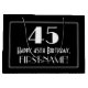 El diseño de esta bolsa de regalo inspirada en el estilo de los años 20, inspirada en el estilo Roaring, presenta un gran estilo Art Déco inspirado en el número "45", el mensaje "Feliz cumpleaños 45", un nombre de personalizable y un patrón fronterizo compuesto de líneas delgadas. El fondo es negro de color. Una bolsa de regalo como esta podría ser usada para envolver regalos que se le dan a alguien en celebración de su 45° cumpleaños. [~Z0000496]