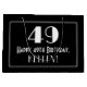 Esta apariencia vintage inspiró el diseño de una bolsa de regalo inspirada en el estilo de los años 2000 con la temática de cumpleaños y que incluye un gran estilo Art Déco inspirado en el número "49", el mensaje "Feliz cumpleaños 49", un nombre de personalizable, y un patrón fronterizo consistente en líneas delgadas. También tiene un fondo de color negro. Una bolsa de regalo como esta se puede usar cuando se le dan regalos de envoltura a alguien en celebración de su 49 cumpleaños. [~Z0000496]