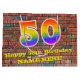 Este colorido y vibrante diseño de bolsos de regalo con temática de cumpleaños, inspirado en el arte urbano, presenta un gran número "50" con un patrón inspirado en el gradiente del espectro arcoiris. También incluye el mensaje "Feliz cumpleaños número 50", y un nombre editable. También tiene un fondo de pared de ladrillo. Una mochila de regalo con tema de cumpleaños como esta podría ser una manera divertida de envolver un regalo o un regalo para celebrar el cincuentenario de alguien. [~Z0000522]