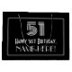 Esta apariencia vintage inspiró el diseño de una bolsa de regalo de cumpleaños inspirada en el estilo de los años 2000. Presenta un gran diseño de estilo Art Déco inspirado en el número "51", el mensaje "Feliz cumpleaños 51", un nombre de personalizable, y un patrón fronterizo consistente en líneas delgadas. También tiene un fondo de color negro. Una bolsa de regalo como esta puede ser usada cuando se da un regalo o regalo en honor al cumpleaños 51 de alguien. [~Z0000497]
