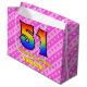 Bolsa De Regalo Grande 51° cumpleaños: Rayas y corazones rosas, arcoiris