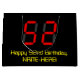 Este diseño de bolsos de regalo geek y tonto con temática de cumpleaños presenta un gran número "52" con un aspecto inspirado en la pantalla digital de siete segmentos de color rojo, junto con el mensaje "Feliz cumpleaños número 52", y un nombre personalizado en texto amarillo nerd, con un fondo de color negro. Una bolsa de regalo personalizada como esta podría ser usada cuando se envuelven regalos o regalos a alguien que está celebrando su cincuenta segundo cumpleaños. [~Z0000389]