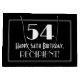 Este diseño de giftbag inspirado en el estilo de los años 20 de Roaring presenta un gran estilo Art Déco inspirado en el número "54", el mensaje "Feliz cumpleaños 54", un nombre personalizado, y un patrón de frontera consistente en líneas delgadas. También tiene un fondo de color negro. Una bolsa de regalo con temas de cumpleaños como esta puede ser usada cuando se da un regalo o regalo para la celebración de los cincuenta y cuatro años de alguien. [~Z0000496]