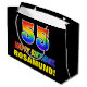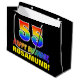 Este colorido, alegre y divertido diseño de bolsos de regalo con temática de cumpleaños presenta un gran número "55" y el mensaje "FELIZ CUMPLEAÑOS", ambos coloreados con un patrón inspirado en el gradiente del espectro del arcoiris, junto con un audaz nombre del destinatario del personalizable amarillo. El fondo es negro de color. Una bolsa de regalo divertida como esta podría ser usada para envolver regalos que se le dan a alguien en celebración de su cincuenta cumpleaños. [~Z0000477]