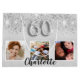 Una bolsa de regalo para un cumpleaños 60 glamuroso y glamuroso. Un fondo plateado de aspecto metálico con polvo purpurina. Personalice y agregue 3 fotos y un nombre. El número 60 se escribe con un tipo de letra de estilo globo. Perfecto como bolso de fiesta o como bolso de regalo.