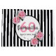 Rayas verticales clásicas delgadas en blanco y negro como fondo. Con rosas rosas negras, femeninas y románticas como decoración. Perfecto para una elegante fiesta de cumpleaños número 60 para ella. Marco blanco y negro con plantillas para el nombre, la edad y una fecha. Edad número 60 en rosa, nombre y fecha en negro. El nombre está escrito con un guión de estilo con letras a mano.