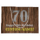 El diseño de las bolsas de regalo de cumpleaños con aspecto de campo y estilo del viejo oeste estadounidense tiene un gran aspecto rústico: "70", el mensaje "Feliz 70 cumpleaños", un nombre de personalizable y un fondo de diseño inspirado en los motivos de la imitación de granos de madera. Una bolsa de regalo de cumpleaños editable como esta podría ser una manera divertida de envolver un regalo para celebrar el septuagésimo cumpleaños de alguien. [~Z0000470]