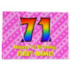 Este diseño de bolsos de regalo con temática de cumpleaños 71, alegre y divertido, presenta un gran número "71" con un patrón inspirado en el aspecto de un espectro arcoiris. También incluye el mensaje "Feliz cumpleaños número 71", seguido de un nombre personalizado. El fondo está decorado con un divertido patrón de rayas rosas oscuras y rosas claras que contienen formas cariñosas de corazón rosado. Bolsas de regalo como esta pueden ser usadas cuando se envuelven regalos o regalos que se dan en honor de los setenta primeros años de alguien. [~Z0000414]