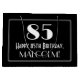 El diseño de esta bolsa de regalo de cumpleaños inspirada en el estilo de los años 20 presenta un gran estilo Art Déco inspirado en el número "85", el mensaje "Feliz cumpleaños 85", un nombre de personalizable y un patrón fronterizo formado por líneas delgadas. También tiene un fondo de color negro. Una bolsa de regalo con tema de cumpleaños como esta podría ser usada para envolver un regalo o regalo que le están dando a alguien que está celebrando su cumpleaños número ochenta y cinco. [~Z0000496]