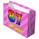Bolsa De Regalo Grande 87º cumpleaños: Rayas y corazones rosados, arcoiri