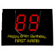 Este divertido y tonto diseño de bolsos de regalo de cumpleaños presenta un gran número "89" con un aspecto inspirado en una pantalla digital de siete segmentos de color rojo, junto con el mensaje "Feliz cumpleaños 89", y un nombre de personalizable en texto amarillo nerd, en un fondo de color negro. Una bolsa de regalo de personalizable como esta puede ser usada para envolver regalos o regalos que se le dan a alguien que está celebrando su cumpleaños número ochenta y nueve. [~Z0000389]