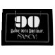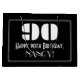 El diseño de esta bolsa de regalo de cumpleaños inspirada en el estilo de los años 2000 presenta un gran estilo Art Déco inspirado en el número "90", el mensaje "Feliz cumpleaños 90", un nombre personalizado, y un patrón de frontera que consiste en líneas delgadas. El fondo es negro de color. Una bolsa de regalo con tema de cumpleaños como esta podría ser usada para envolver un regalo o regalar para celebrar el cumpleaños 90 de alguien. [~Z0000495]