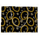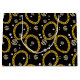 A hip hop 90's music style gold Cuban link chain theme design perfect for birthday parties, home decor, personalized gifts with a hip hop rap theme. Hand drawn Cuban link chain and accessories on a black background. Ideal for 90's theme hip hop and rap enthusiasts, black and gold designs and anyone who loves old school illustrations.