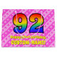 Este divertido y animado diseño de una bolsa de regalo con tema de 92 años presenta un gran número de "92" con un patrón inspirado en la apariencia de un espectro arcoiris. También incluye el mensaje "Feliz cumpleaños número 92", seguido de un nombre personalizado. El fondo está decorado con estribos de color rosa claro y rosa oscuro, adorables con formas de corazón rosado. Bolsas de regalo como esta pueden ser usadas cuando se envuelven regalos o regalos que se dan a alguien que está celebrando su cumpleaños noventa. [~Z0000414]
