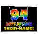 Este colorido, divertido y alegre diseño de bolsos de regalo con temática de cumpleaños incluye un gran número "94" y el mensaje "FELIZ CUMPLEAÑOS", ambos coloreados con un patrón inspirado en el gradiente del espectro del arcoiris, junto con un audaz nombre de destinatario personalizado amarillo. El fondo es negro de color. Una bolsa de regalo divertida con tema de cumpleaños como esta podría ser usada para envolver un regalo o regalar para celebrar el cumpleaños noventa de alguien. [~Z0000477]