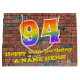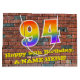 Este divertido y colorido diseño de bolsos de regalo con motivo del cumpleaños, inspirado en el graffiti y el arte callejero, presenta un gran número de "94" con un patrón inspirado en el gradiente del espectro del arco iris, junto con el mensaje "Feliz cumpleaños 94", y un nombre personalizado. El fondo está inspirado en una pared de ladrillo. Una bolsa de regalo vibrante como esta podría ser una manera divertida de envolver un regalo de cumpleaños o un regalo que se le da a alguien que está celebrando su cuarto cumpleaños. [~Z0000522]