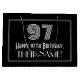 Este diseño de bolsos de regalo inspirado en el estilo vintage de los años 1920-1930 presenta un gran estilo Art Déco inspirado en el número "97", el mensaje "Feliz cumpleaños 97", un nombre de personalizable y un patrón fronterizo compuesto de líneas delgadas. El fondo es negro de color. Una bolsa de regalo como esta se puede usar cuando se envuelve un regalo de cumpleaños o se le da a alguien que está celebrando su cumpleaños noventa y siete. [~Z0000497]