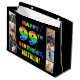 Este animado y alegre diseño de bolsos de regalo de cumpleaños incluye el mensaje "FELIZ CUMPLEAÑOS 99", con el texto con un patrón de gradiente inspirado en el espectro multicolor del arcoiris, junto con un nombre de receptor de personalizable. Las fotos a la izquierda y a la derecha del mensaje con motivos de arco iris en la parte delantera de la bolsa de regalo se pueden personalizar, tal vez con fotos del destinatario, la familia y amigos del destinatario, y/o el(los) remitente(s) del regalo. Una audaz bolsa de regalo como esta podría ser una forma divertida de envolver un regalo de cumpleaños o un regalo para alguien que esté celebrando su cumpleaños noventa y nueve. (Fotografía © Storytree Studios, Stanford, CA.) [~Z0000668]