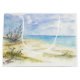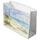 Hermosas bolsas de regalo con capa marina en acuarelas impresionistas. Cielos azules y mares azules caribeños se lavan en costas arenosas.