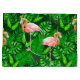 Diseño de acuarela con aves flamingo y hojas tropicales.