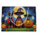 Escena divertida de Halloween con un pequeño y travieso cachorro mirando desde una calabaza tallada, rodeada de vibraciones de otoño espeluznantes y divertidas. Con un encanto descarado y colores otoñales, es el toque de humor perfecto para la temporada.