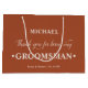 Bolsa personalizada de regalo para el groomsman con paleta color terracota y crema de almendras. La plantilla de nombres está preparada para que añada el nombre del novio, así como los nombres de la novia y del boda. La frase de agradecimiento dice "Gracias por ser mi groomsman" en una mezcla de escritura elegante y tipografía fuerte y audaz. Por favor, busque en nuestra tienda colores y tamaño alternativos.