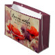 Hermosa gran bolsa de regalo con escritura cristiana inspiradora de cita representa un diseño de arte floral de acuarela simple y elegante con dos flores rojas y un fondo púrpura abstracto. Presenta una Biblia motivadora Verse Juan 15:12, en las palabras de Jesús, "Amaos unos a otros como os he amado". Buena elección para El día de San Valentín y muchas ocasiones especiales.