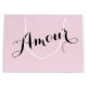 Esta elegante bolsa de regalo rosa suave al estilo parisino es moda y definitivamente hará que su regalo parezca aún más elegante. Esta bolsa dice "Amour" (que significa amor en francés) en texto negro elegante, pero puedes cambiarlo usando la plantilla si hay otra palabra que sería perfecta para tu celebración o boda. También puede cambiar el color de fondo si lo desea.