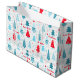 Bolsa de regalo para Navidades pequeños y modernos con un patrón de árbol de Navidad en azul, rojo y rosa sobre el fondo blanco en el sencillo estilo nórdico. Personaliza fácilmente el texto. - Kate Eden Art