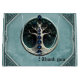 Armonía en el verde azulado árbol místico de la vida. El árbol tiene un tronco blanco sencillo y ramas adornadas con hojas verdes oscuras, vitalidad radiante y una conexión con la naturaleza. Una serie de piedras preciosas azules se colocan a lo largo del baúl, sirviendo de atractiva y dando a la imagen general un toque de elegancia y misterio. Delicadas cadenas de pequeñas perlas cuelgan de las ramas, dándole al diseño un toque delicado y juguetón. El fondo es un verde azulado suave y texturizado, que crea un ambiente tranquilo y resalta el carácter místico del diseño.
