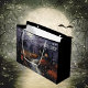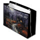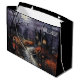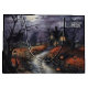 Bolsa de regalo de Halloween con una escena de acuarela de Halloween con una casa embrujada y murciélagos girando sobre el paisaje de otoño iluminado por la luna. Feliz saludo de Halloween en la parte superior derecha. Otros tamaños disponibles. Es posible que la imagen deba ajustarse en diferentes tamaños.