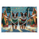 This festive design captures the joyful spirit of the holiday season, featuring an adorable dogs.Nestled in a winter wonderland, complete with a decorated Christmas tree, and beautifully wrapped presents. Snowflakes gently fall, adding a magical touch to the scene, while the vibrant colors of the holiday decorations create a warm and cheerful atmosphere.
