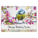Bolsa de regalo de cumpleaños feliz con una fotografía asombrosa del pequeño pájaro más lindo encaramado en una rama cubierta de flores rosas y hojas verdes. El pájaro tiene la cabeza azul y el cuerpo amarillo con una cara muy dulce. Adorable. Una fina franja blanca a través de la imagen con su propio texto dentro.
